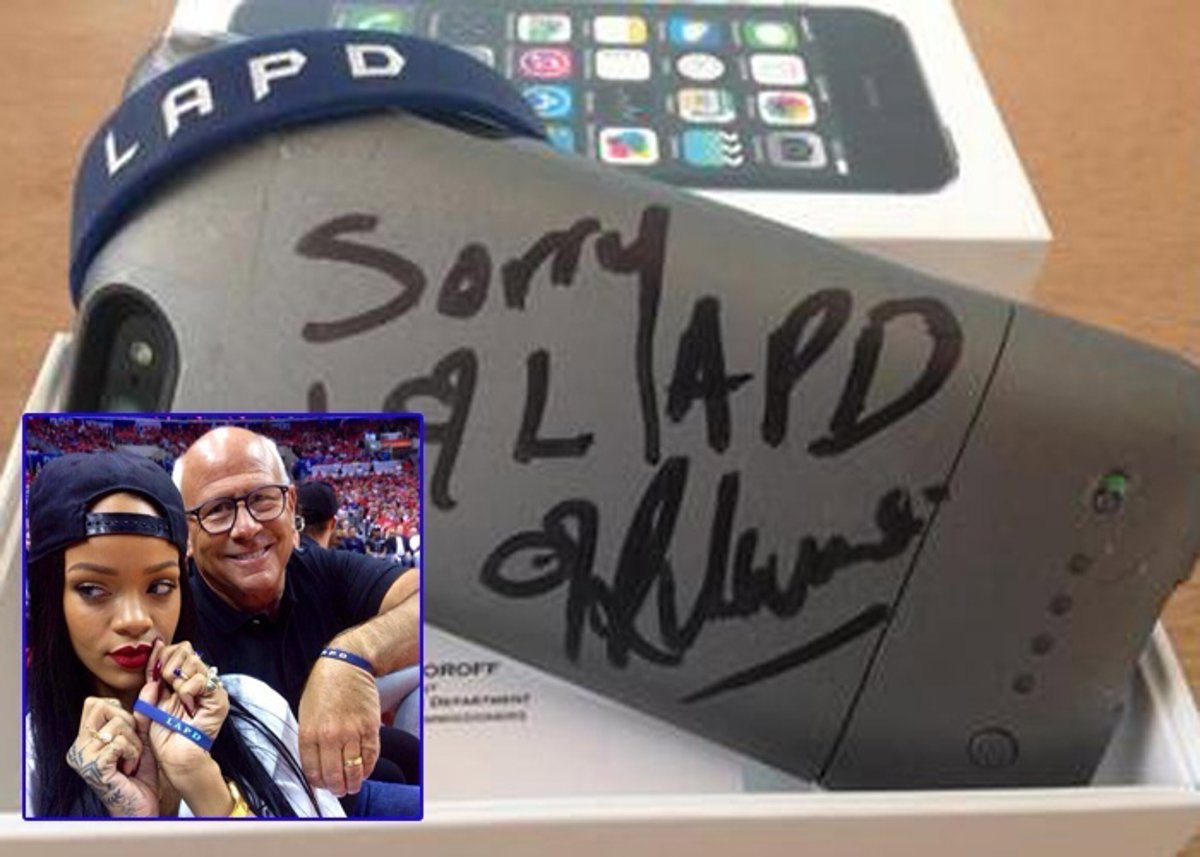Tras haber protagonizado este hecho algo bochornoso, Rihanna no dudó en donar la friolera de 25.000 dólares a la fundación de la policía de Los Ángeles. Además, Steve Soboroff le pidió que ya que el móvil había quedado algo inservible, que si lo podría autografiarlo y que sirviese como un elemento de coleccionista para sus fans. Rihanna aceptó encantada y escribió "Lo siento <3 LAPD. Rihanna” en la parte trasera del teléfono.