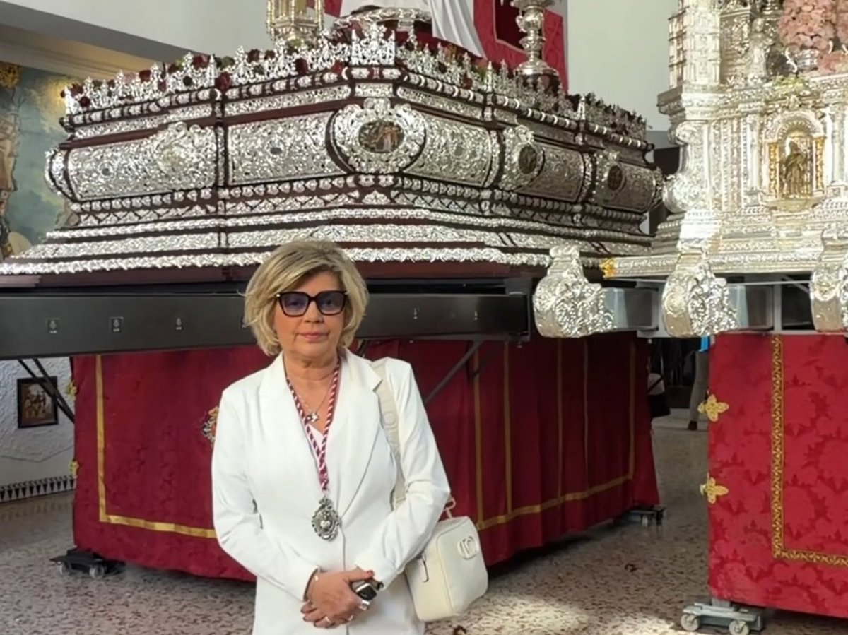 Como no podía ser de otro modo siendo devota de 'El Cautivo' -'El señor' de Málaga- la colaboradora ha cumplido con la tradición y ha visitado a la imagen en la casa hermandad de la Cofradía de Nuestro Padre Jesús Cautivo y María Santísima de la Trinidad Coronada horas antes de su salida en procesión por las calles de Málaga.