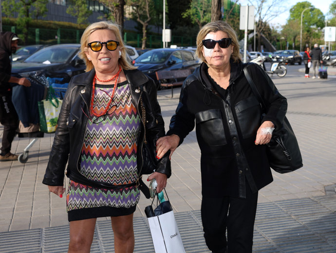 Muy relajada y sin ningún tipo de dolor, así hemos visto a Terelu Campos a la salida de la clínica oftalmológica en la que ha sido intervenida del orzuelo que tenía en el ojo y que tantas molestias le ha causado en las últimas semanas. Con el ojo tapado con un apósito, la colaboradora de televisión caminaba agarrada al brazo de su hermana Carmen Borrego que le ha acompañado en este pequeño trámite.