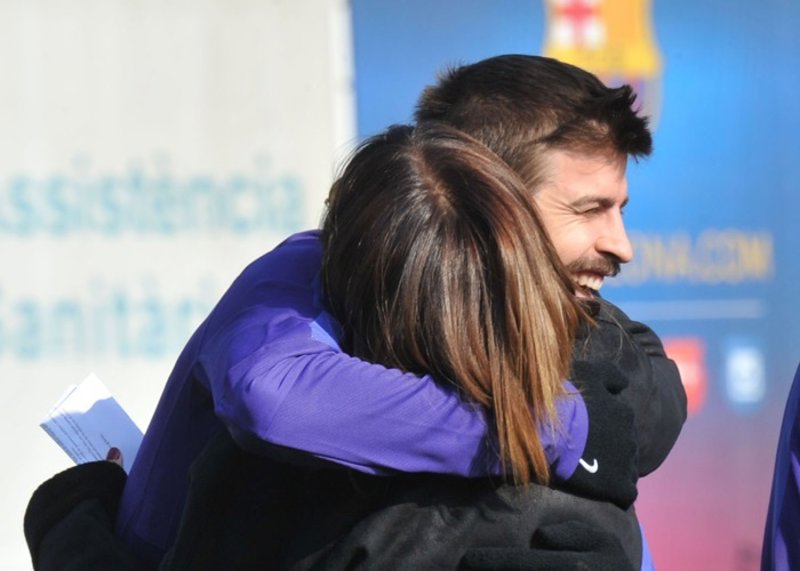 Al finalizar su discurso, Montse se fundió en un emocionado abrazo con buena parte de los jugadores del Barca, destacando especialmente el abrazo con Gerard Piqué.