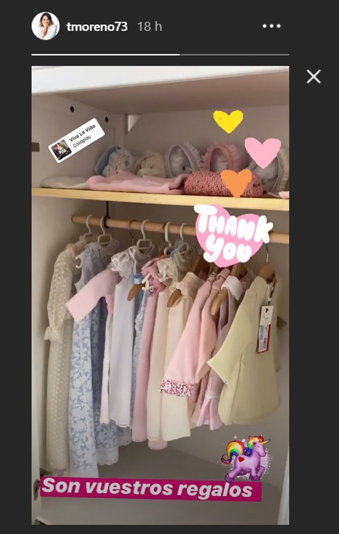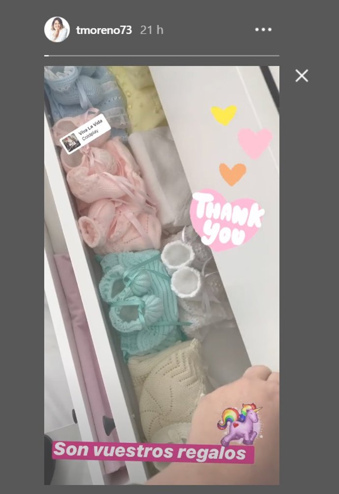 Con el mensaje de: "Son vuestro regalos", la presentadora ha querido compartir y agradecer con todos sus seguidores la ilusión que le da tener ya preparado muchas cosas que disfrutará Lola cuando nazca.