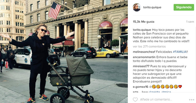 Hace algunos días pudimos ver cómo Torito daba una vuelta con su niño en el cochecito por San Francisco para celebrar sus diez días de vida. Lo que sí está claro es que Nathan ha sido un niño muy esperado por sus padres y que recibirá todo el amor que ambos tenían guardado para él, así lo demuestra el colaborador en sus redes: "Este niño me ha cambiado la vida".