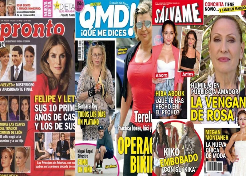Que sí Bárbara Rey come plátanos en ¡QMD!, Kiko Rivera puede tener un nuevo ligue o que Conchita Wurst ya tiene novio nos lo encontramos en la portada de Sálvame. Otro de los temas que están muy candentes en la actualidad es la del triste crimen de Isabel Carrasco, la Presidenta de la Diputación del PP en León, cuyo móvil podría haber sido el odio y la venganza pues las dos asesinas que se encuentran hasta la fecha en prisión así se están revelando, Pronto nos da todas las claves de este triste suceso.