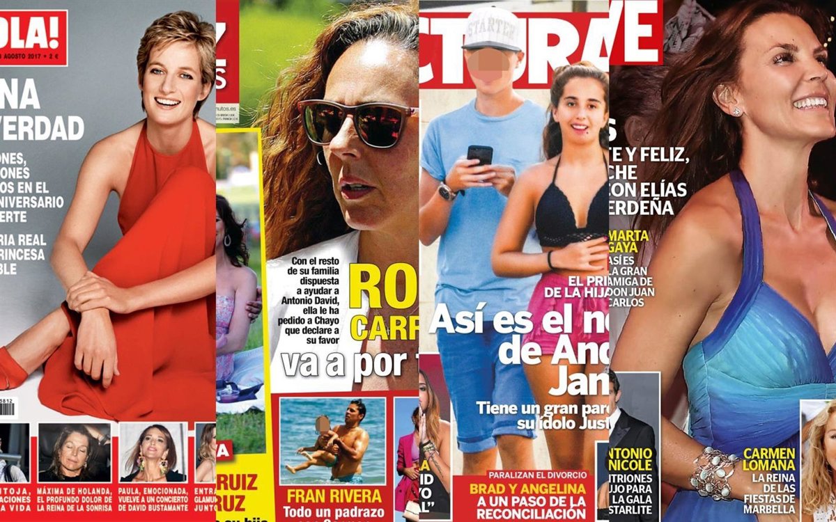 Un miércoles más, los quioscos españoles vuelven a traer las últimas novedades de la crónica social nacional e internacional. En pleno mes de agosto, conocemos de primera mano al verdadero novio de Andrea Janeiro. Una auténtica copia de Justin Bieber que 'compite' en las portadas con la felicidad de Mar Flores, la confesión de María Teresa Campos y la lucha de Rocío Carrasco contra Antonio David.