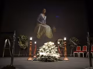 Con decenas de personas aguardando pacientemente la cola que bordeaba la madrileña plaza de Santa Ana para dar su último adiós a la actriz, fallecida el pasado lunes en su domicilio a los 66 años, el coche fúnebre con los restos mortales de Verónica Forqué llegaba al teatro en torno a las 10.30 horas y poco después quedaba instalado en el escenario del Español, con varias imágenes enormes de la inolvidable Kika presidiendo el lugar y decenas de coronas de flores alrededor del féretro.