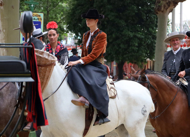 Sin rastro de su actual pareja Jorge Navalpotro, Victoria recorrió el Real de la feria a caballo demostrando que es toda una experta como amazonas, una afición que ha heredado de su madre, la infanta Elena. Luciendo un espectacular traje cordobés en tonos caldera, la nieta del rey Juan Carlos presumió de elegancia mostrando su lado más cercano y sonriente con los sevillanos.