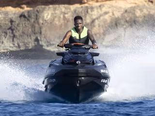 Como principal distracción, el jugador surcó las olas a bordo de una moto de agua con la que demostró su destreza en la conducción ya que regresó a la embarcación sin haber caído de la moto y luciendo el chaleco salvavidas reglamentario.