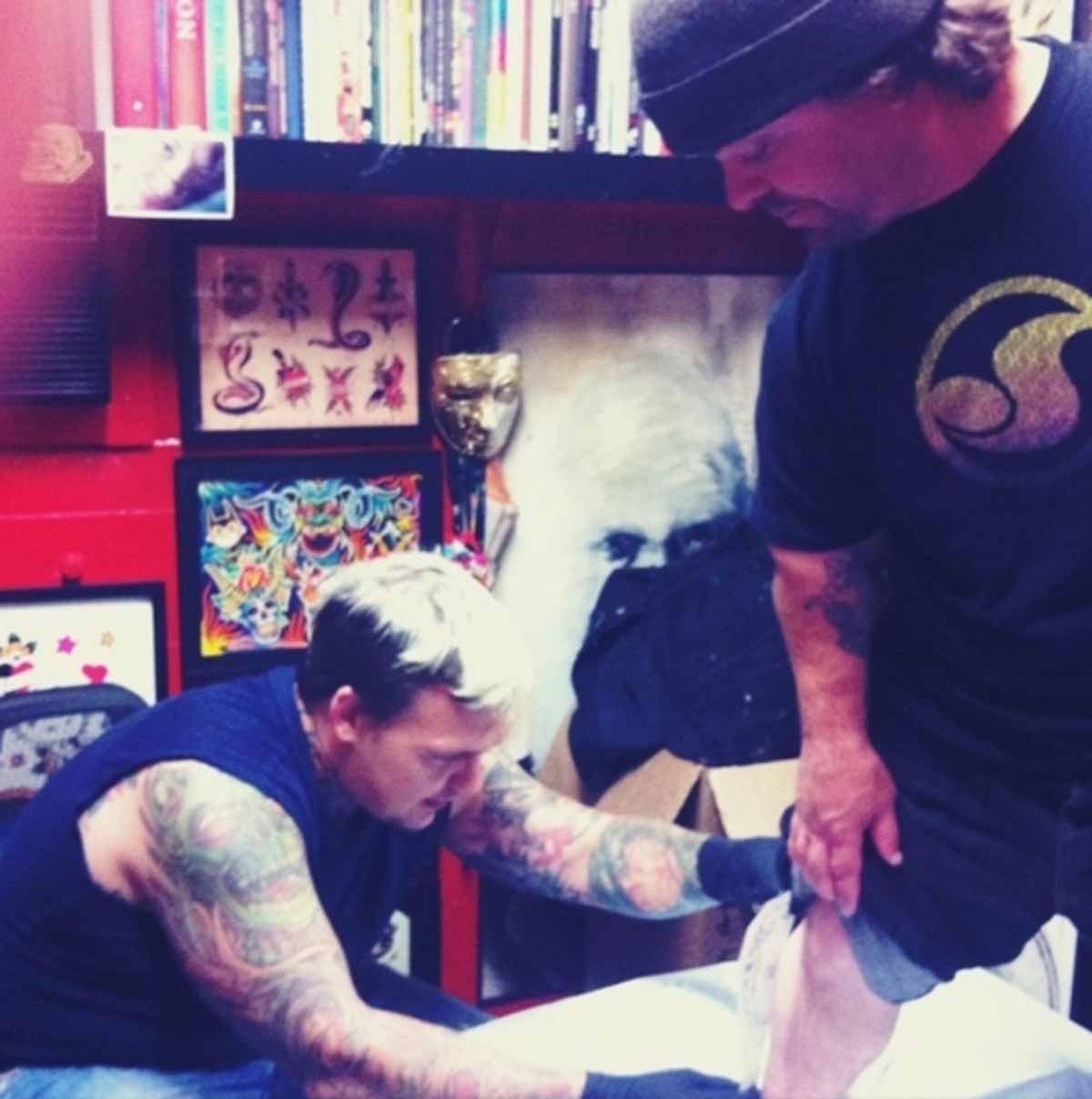 El popular actor de Jackass ha querido compartir con todos sus seguidores de Twitter el proceso de creación de este dibujo y a parte de subir fotos, Man ha colgado un vídeo en el que se puede ver el momento en el que le están retocando el dibujo.
