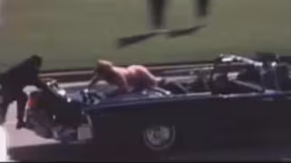 A los 10 segundos de la grabación, se ve cómo el presdiente tiene un espasmo, un movimiento en el que parece que se agacha. Jackie se gira y le agarra del brazo, un momento que marca el primer disparo recibido por el presidente. Poco después, recibe otro disparo que le explota la cabeza. Tras ese momento, Jackie se alza al maletero del coche, buscando desesperada a uno de los guardaespaldas.