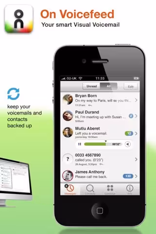 On Voicefeed permite disfrutar de las ventajas de visualizar las llamadas de los contactos que han dejado mensajes en el contestador. La aplicación permite seleccionar cada una de las llamadas y escuchar los mensajes en el orden elegido,
