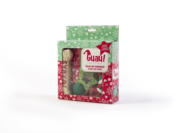 Siguiendo con el espíritu navideño, te mostramos esta cajita regalo de Navidad. Y es que al igual que nosotros, los perros también pueden tener su opción de postre navideño después de las comidas. Además de incluir galletitas, el pack también incluye una pelota y un juguete de cuerda.
