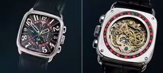 El cronógrafo Fedor Dostoevsky es el homenaje transgresor de Alexander Shorokhoff a ese mundo de los juegos de azar, marcado por la suerte. La pieza más reciente de la Colección Heritage, que reúne los relojes supremos de la Marca alemana, se singulariza tanto por la decoración de la esfera y de la parte posterior de la caja, como por su inusual formato cuadrado, con 43 milímetros de lado.