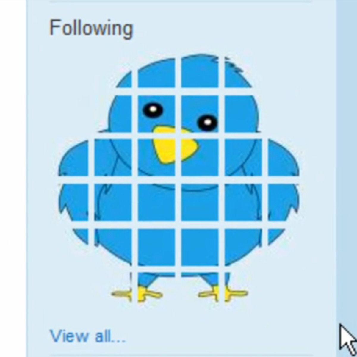 Básicamente lo que hicieron fue pedir a varios de sus contactos que cambiaran su imagen por un fragmento del dibujo, en este caso un pájaro en honor a la web de microblogging. El resultado... tan llamativo como divertido.