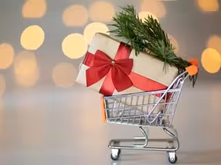 Christmas gift in a supermarket mini trolley - CONTACTOPHOTO