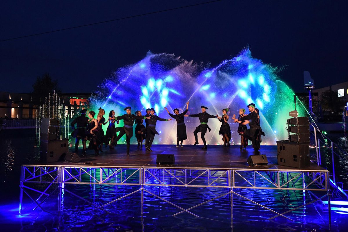 Dentro del lago está instalada una fuente cibernética-musical. Esta fuente, que puede verse desde todos los ángulos de la zona de terrazas, es la protagonista de todas las noches de fines de semana, ya que hace que disfrutemos de una cena con espectáculo con una perfecta sincronización entre el sonido, el agua y la música como si estuviéramos en plena naturaleza. Algo de lo más agradable con ofertas de distintos precios para todos los públicos sin tener la necesidad de buscar un restaurante con terraza.