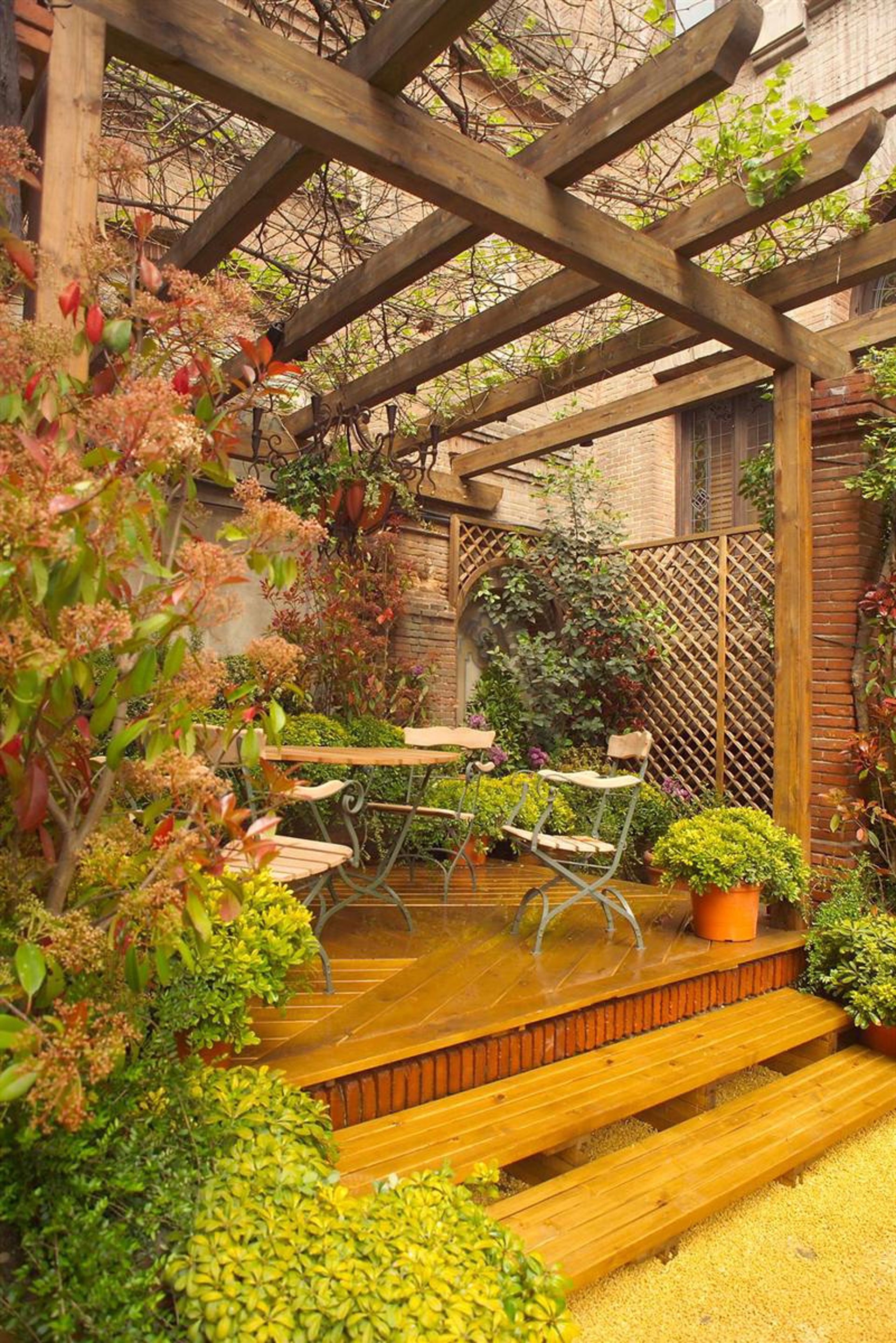 La madera es por otro lado un material muy cálido y confortable. Ideal para decorar tanto terrazas como jardines, no hay nada mejor que este material para llenar de naturalidad un espacio. Hay dos estilos muy diferenciados: el más rústico, caracterizado por la utilización de troncos más gruesos y madera menos tratada y otro más sofisticado que emplea maderas más nobles y refinadas.