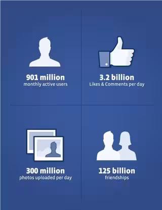 El documento también informa de otras cifras, como el número de "me gusta" y de comentarios al día, que se encuentra ya en 3.200 millones. Diariamente, se suben 300 millones de fotos a esta red social, y hay un total de 125.000 millones de amistades.