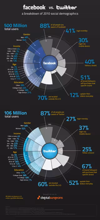 La infografía completa está disponible en: http://www.digitalsurgeons.com/facebook-vs-twitter-infograph...