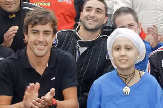 Aunque está en plenas vacaciones, Fernando Alonso ha mostrado su lado más humano y solidario para apoyar una buena causa y firmar autógrafos a los asistentes. Se trataba de recaudar fondos para ayudar a Almudena Torres, 13 años, afectada de leucemia y con un complicado tratamiento. El dinero recaudado irá íntegramente destinado a costear un tratamiento experimental para Almudena en Filadelfia (EE UU).