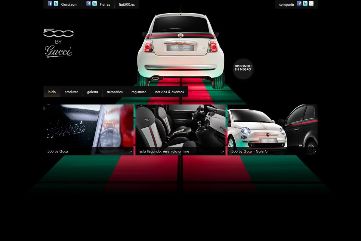 Con motivo del lanzamiento de este modelo, fruto de la colaboración entre la firma italiana de moda y el Centre Stile de Fiat, la marca automovilística ha habilitado una web (www.500bygucci.es), en que la se podrán efectuar las pre-reservas y conocer todos los detalles del coche.