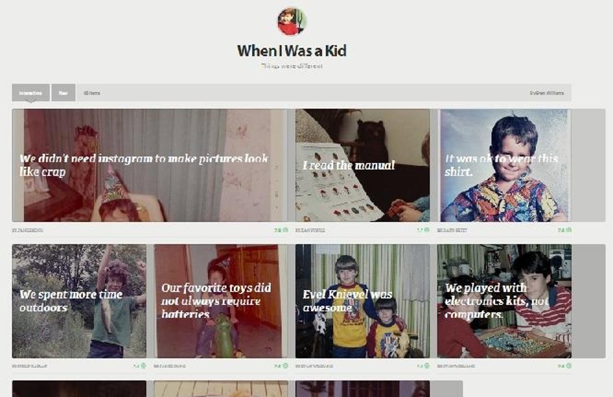 En la página web, se pone como ejemplo la colección "Cuando era un niño", con imágenes de la infancia del usuario, catalogadas por etapas.