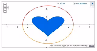 Utilizando esta posibilidad, ha aparecido la que se puede considerar como la fórmula del amor. Al introducir dicha fórmula, los usuarios podrán ver su representación, que consiste en un auténtico corazón. Para conseguir este resultado, los usuarios solo tienen que introducir la siguiente fórmula: sqrt(cos(x))*cos(300x)+sqrt(abs(x))-0.7)*(4-x*x)^0.01, sqrt(6-x^2), -sqrt(6-x^2) from -4.5 to 4.5.