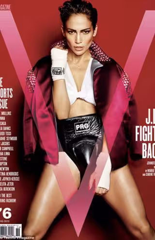 Y sigue estando sexy. Aunque no sea en el estado habitual al que estamos acostumbrados a verla, la cantante y actriz no ha perdido ni un ápice de su sex appeal. Y es que, para la portada de la revista V, J.Lo se ha enfundado los guantes de boxeo y ha sacado a pasear su lado más varonil.