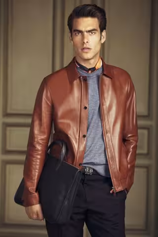La colección incluye una parka ligera en ante, una cazadora Varsity de manga raglan y cuerpo de cocodrilo; una blazer en la napa más ligera de Loewe, especialmente cortada para que pese lo menos posible; una chaqueta 'de artista' en ante y napa mezclados que se abrocha con corchetes metálicos de gran tamaño, y una cazadora biker en piel de cabra extremadamente suave al tacto pero también resistente y cálida.