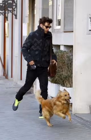 Junto a su mascota y ataviado con un maxi bolso de cuero marrón salió a la calle para hacer unas gestiones personales. Al ser uno de nuestros modelos más internacionales, su tiempo es oro y por eso aprovecha cada vez que está en casa para llevar una vida tranquila.