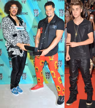 Otros que también triunfaron en cuanto a estilismo fueron los chicos de LMFAO con su mítica pasión por lo original, el colorido y, sobre todo, el print animal en black and white. Ellos también decidieron lucir dos modelitos, uno para la alfombra roja y otro para las tablas, pero siempre fieles a su estilo.