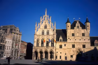 La Plaza Mayor está llena de edificios históricos con suntuosas fachadas. Está dominada por la estatua de Margarita de Austria, que gobernó la ciudad durante el periodo borgoñón. El edificio más imponente es el Ayuntamiento, situado en el antiguo Salón de los Tejidos. Muy cerca verás la Catedral de San Romualdo, cuya parte más destacada es su imponente torre, una de las más bellas de Flandes. Domina la ciudad desde sus 97 metros de altura y en ella se encuentran sus dos famosos carillones con 49 campanas. Malinas es, además, particularmente famosa por la escuela de carillón. Muchos concertistas de carillón del mundo entero han aprendido aquí los secretos de este difícil oficio.