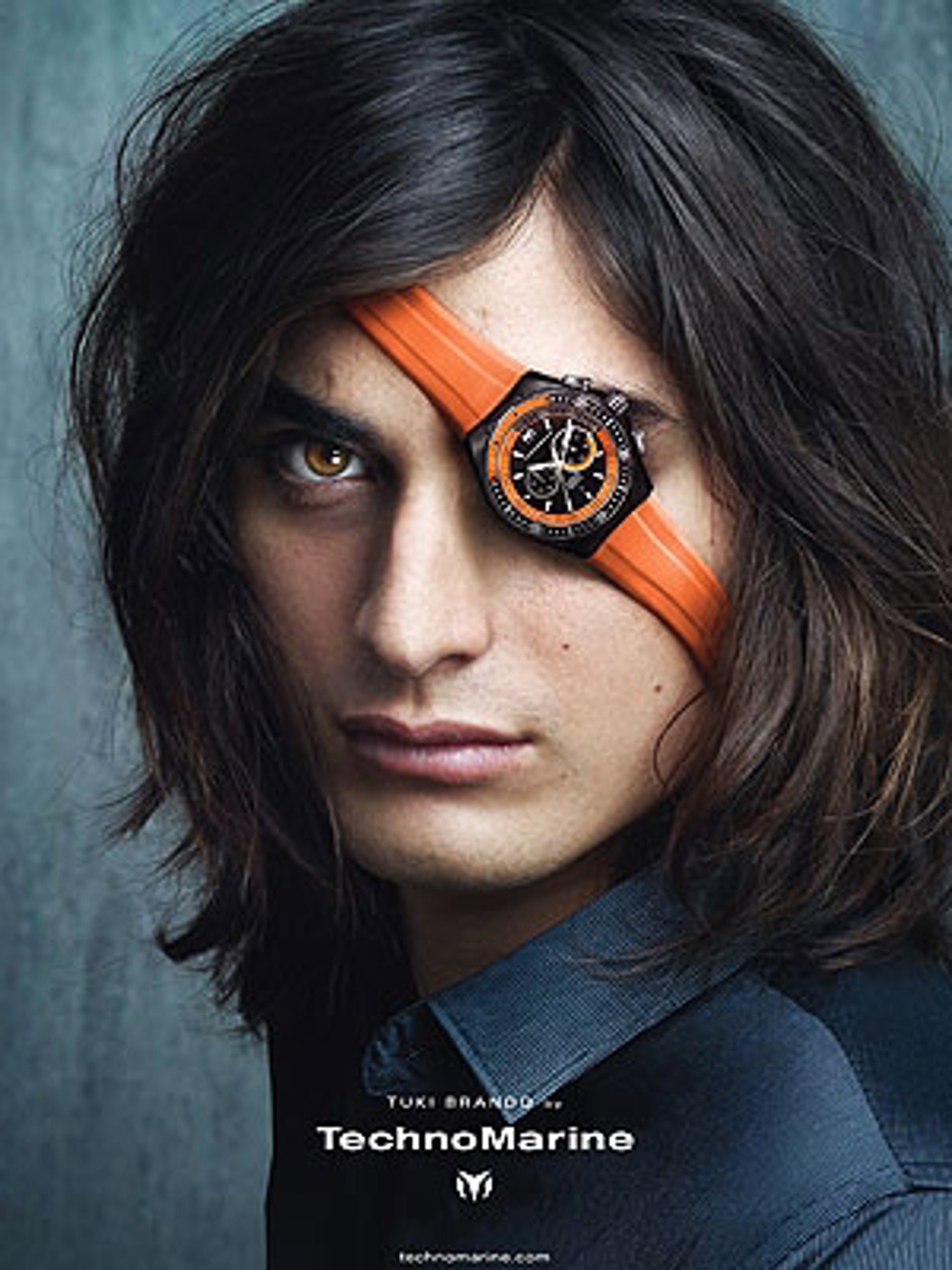 Con un reloj a modo de parche y una mirada desafiante, Tuki Brando, el nieto de la mítica estrella de Hollywood Marlon Brando, con quien guarda un asombroso parecido, es una de las caras de la nueva campaña de la firma de relojes TechnoMarine para esta temporada.