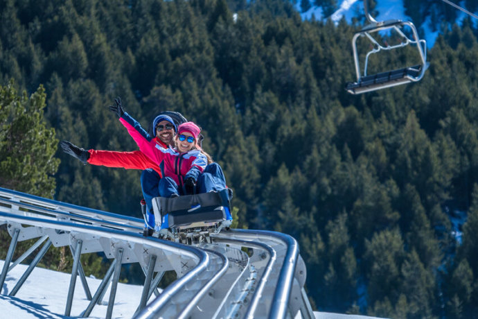 ¿Te gusta la sensación de libertad que se siente cuando te da el viento en la cara? Si es así, completa tu experiencia de alto voltaje lanzándote en una tirolina situada a 40 metros de altura o deslizándote en el Màgic Gliss, un tobogán de 555 metros de bajada que alcanza los 40 kilómetros por hora. Todo ello en el Mon(t) Màgic Family Park, del sector Canillo, por lo que es un planazo si vas con niños ¡Y sino también!