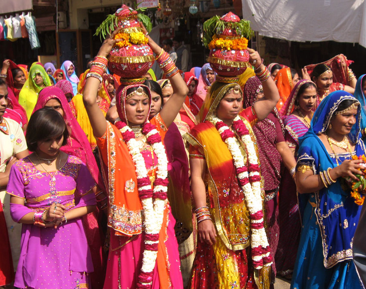 Por su parte, en febrero, unos días antes de la luna llena de primavera según el calendario hindú, músicos, bailarines y artistas de todo Rajasthan empiezan a avanzar en caravanas de camellos de color dorado hacia la ciudad de Jaisalmer. Comienza el Festival del Desierto.