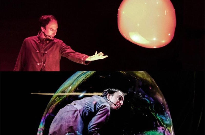 Esculturas imposibles, burbujas gigantes, construcciones inverosímiles de pompas sobre pompas. David Vega se convierte en todo un maestro de las pompas y se sirve de variados de artilugios para dar vida a su efímero arte.