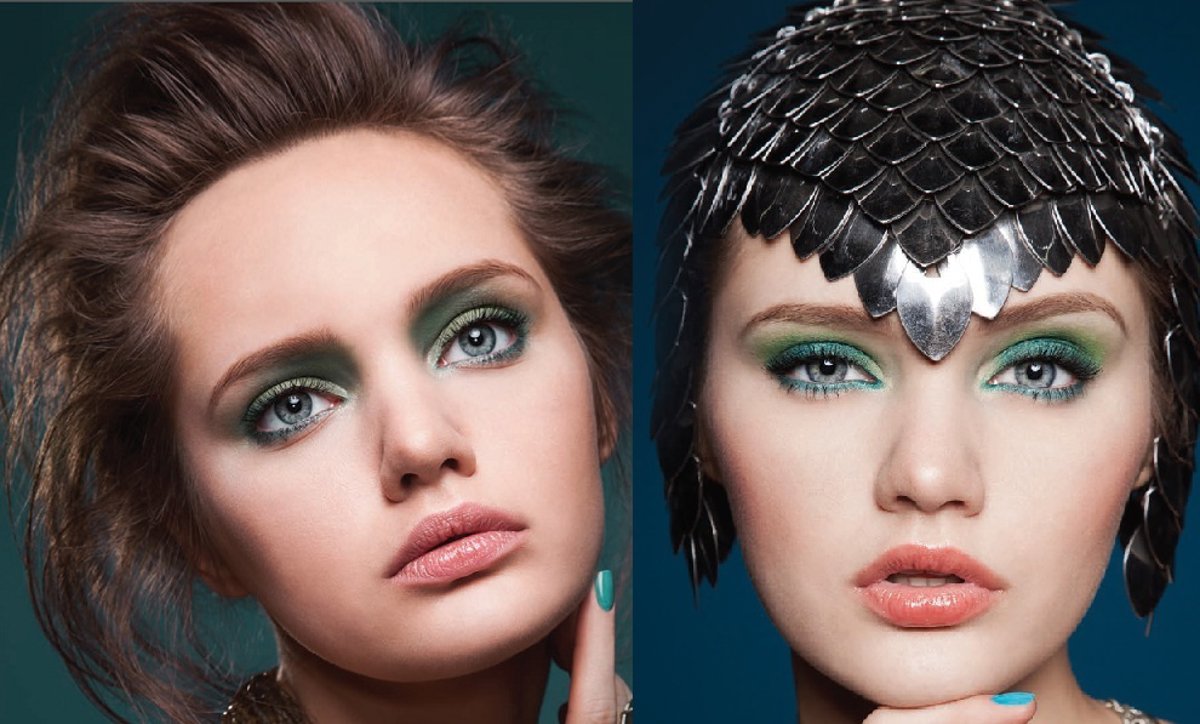 Secret Soul enfatiza la mirada con una llamativa paleta de sombras verdes y azules en contraste con una boca suave y arrebatadoramente sexy con efecto de "labio mordido".