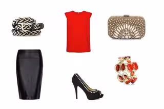 Si no tienes plan para hoy aprovecha y dedicate una noche para ti, pero si lo tienes, ya sea con tu pareja o con amigos, te proponemos un look rompedor. Olvídate de un total look red y apuesta por combinar el color del amor con negros y dorados, los colores de moda. Cuero y tachuelas también pueden convertirse en complementos románticos, pero sobre todo apasionados.