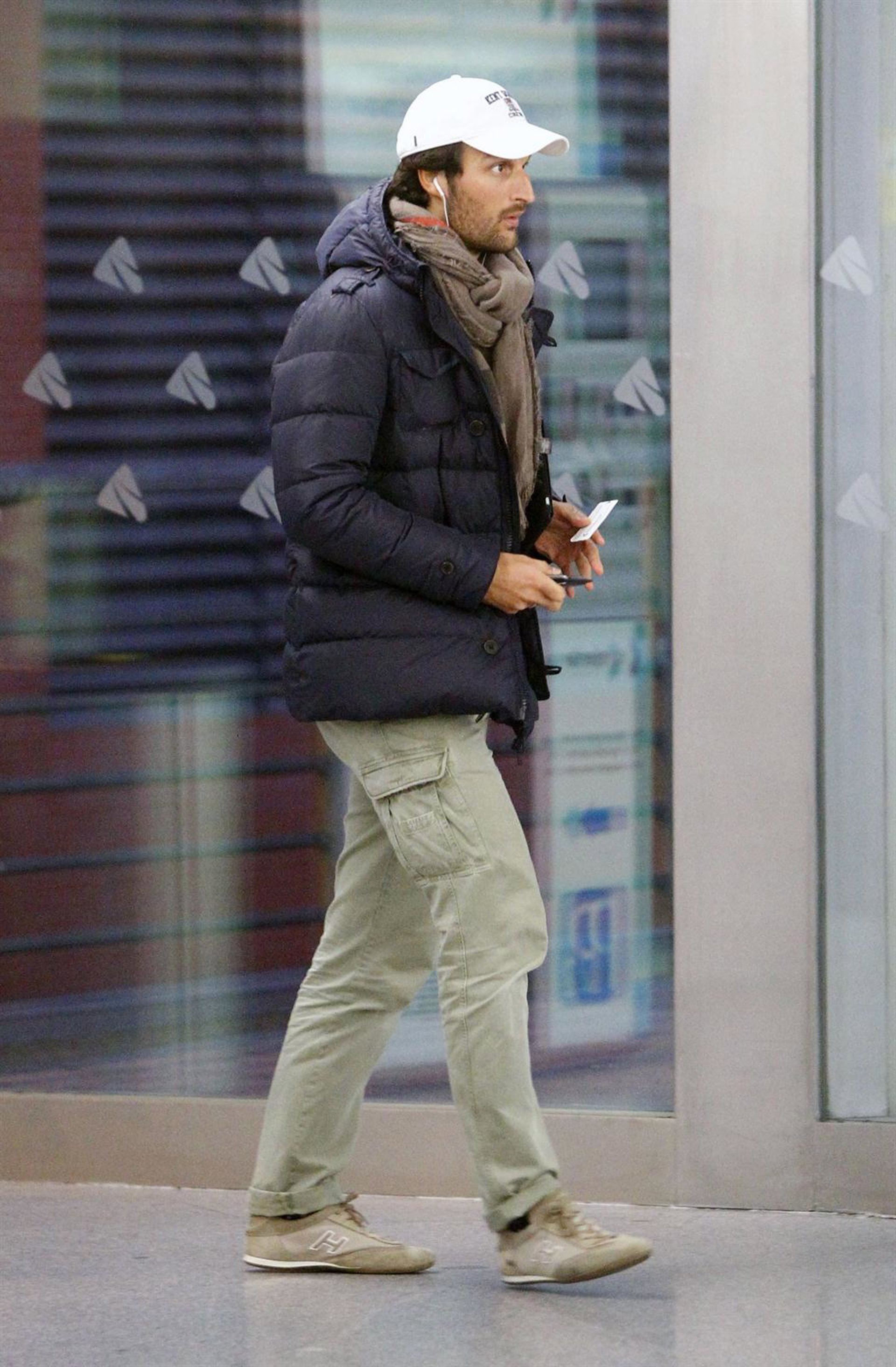 El recién convertido en padre apostó por un abrigo tipo plumas azul marino, unos pantalones beige con bolsillos y remangados y unas deportivas del mismo color. Para completar el look, o para pasar desapercibido, el Duque de Feria acompañó su vestuario con una gorra blanca y un fular XXL que ocultaban algo su rostro.