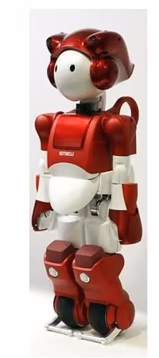 El robot pesa 14 kilos y sus piernas se pliegan para facilitar su transporte. Las ruedas disponen de la tecnología "control de postura" lo que le ayuda a hacer más suaves los giros.