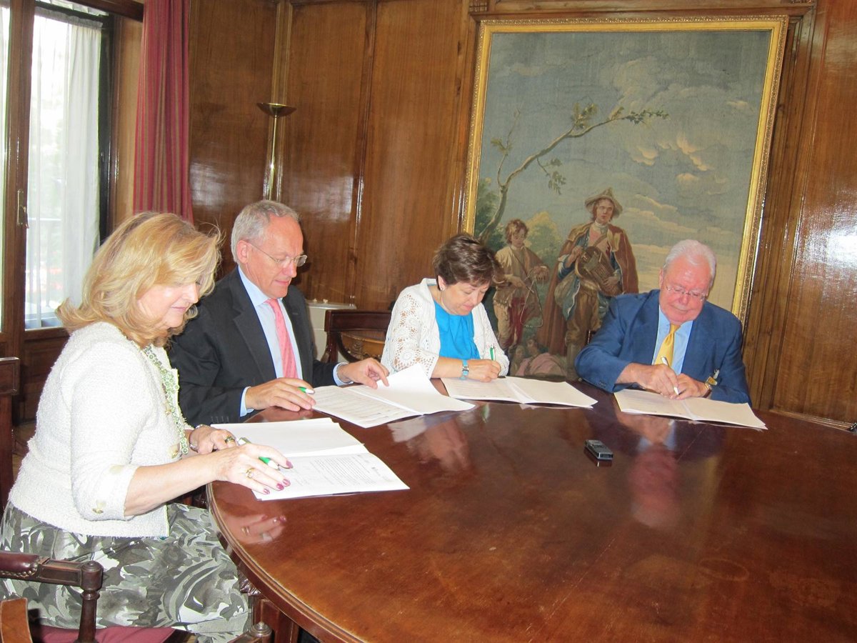 La secretaria general de Sanidad y presidenta de la Agencia Española de Seguridad Alimentaria y Nutrición (AESAN), Pilar Farjas, el presidente de la Confederación Española de Detallistas de la Carne (CEDECARNE), Joan Estapé i Mir, y el presidente de la Asociación de Fabricantes y Comercializadores de Aditivos y Complementos Alimentarios (AFCA), Andrés Gavilán Bravo, han firmado este jueves un acuerdo de colaboración para reducir la sal y la grasa saturada en los productos de carnicería y charcutería.