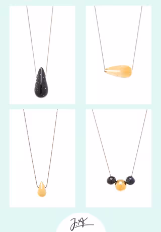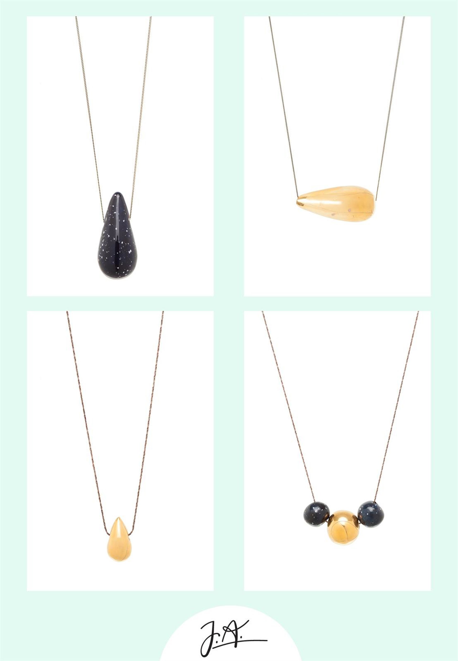 La propuesta está formada por ocho colgantes, hechos integramente a mano, caracterizados por sus formas geométricas y sus líneas naturales. Con un complejo y delicadísimo trabajo, Julieta Álvarez ha creado en su taller en el centro de Madrid, elegantes tesoros vanguardistas que darán un toque de distinción y tendencia a cualquier estilismo.