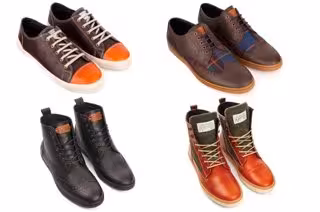 Fred Perry presenta cuatro modelos caracterizados por su originalidad. Leather está fabricado en piel y tela escocesa, con la suela troquelada y punteada. Hughes es un botín de cuero negro y suela troquelada.