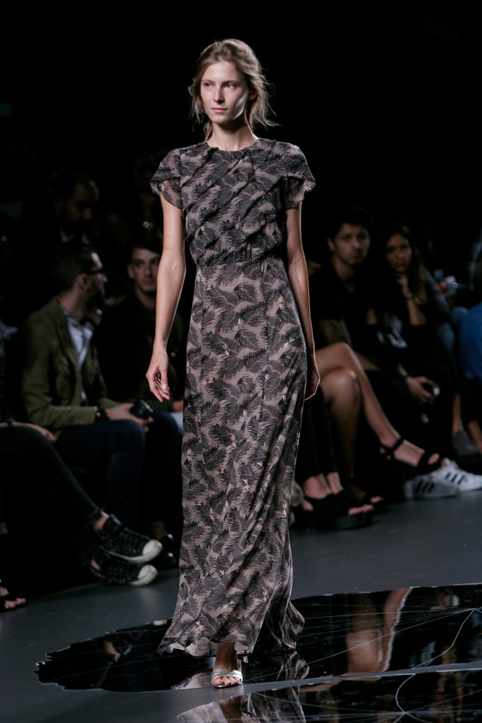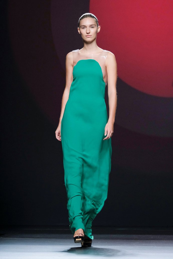Los volúmenes han marcado una vez más su propuesta que estaba teñida de rojo, verde, amarillo, algunas piezas, como un mono de neopreno y un vestido con superposiciones geométricas en nude y, cómo no, sus clásicos blanco y negro.