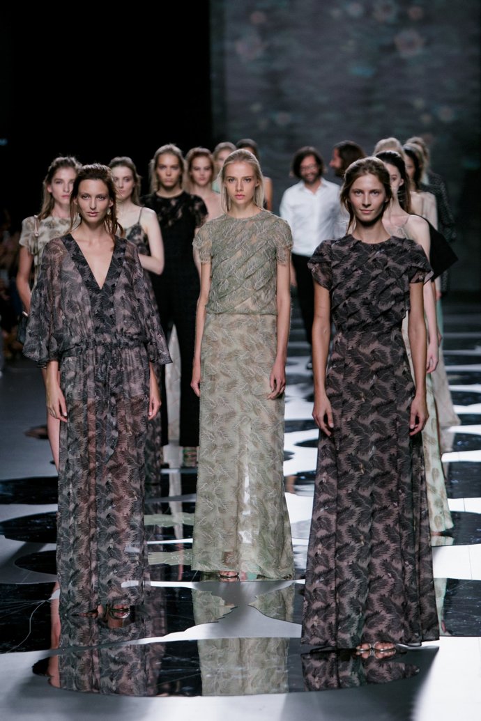 Crepes y bambulas de seda, piqué, jacquard, encajes... son los tejidos de los que se han valido para confeccionar unos vestidos cortados al biés con espaldas descubiertas o los de corte lencero. Una colección primavera verano 2017 en la que han cuidado tanto los detalles como acostumbran y que se ve reflejado en las pequeñas lorzas y los pliegues alienados, los canesú de nido de abeja y los volantes que se superponen a modo de flor.