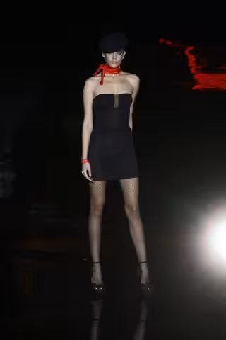 Para meternos de lleno en los años 90, Sarda ha revivido el efecto push up y los detalles de encaje. Unas propuestas seguidas por el sabor más español: flamenco, mantillas, peinetas y guantes. Antes de llegar al colofón final, la colección se ha paseado por la décado del 2000 rodeada de piezas de piel en versión puño, chal, cuello...