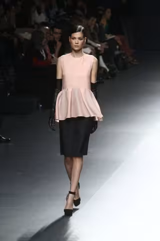 Se trata de evocar "la estricta feminidad de los años 40". Los colores lisos enteros se mezclan con los looks bicolor donde, en primera instancia, se desmarcan el nude empolvado, el negro y el burdeos.