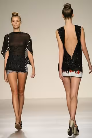 Predominan tejidos como el algodón, la seda y la gasa en vestidos de fiesta a la altura de la rodilla, decorados con agujeros de diferentes tamaños en escotes asimétricos y a la altura de la cintura.