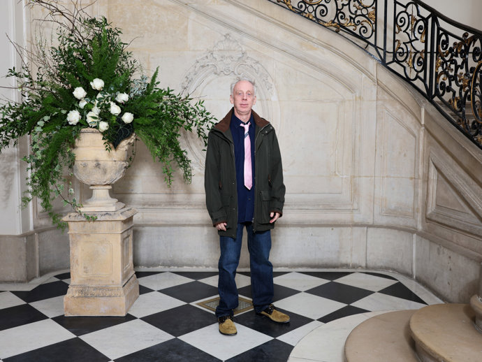 Sencillo, sofisticado y con un toque urbano. Mike White se dejó ver con vaqueros oscuros, camisa en el mismo tono y parka verde botella... pero sin duda, el complemento más especial fue la corbata de seda en color rosa de Dior.