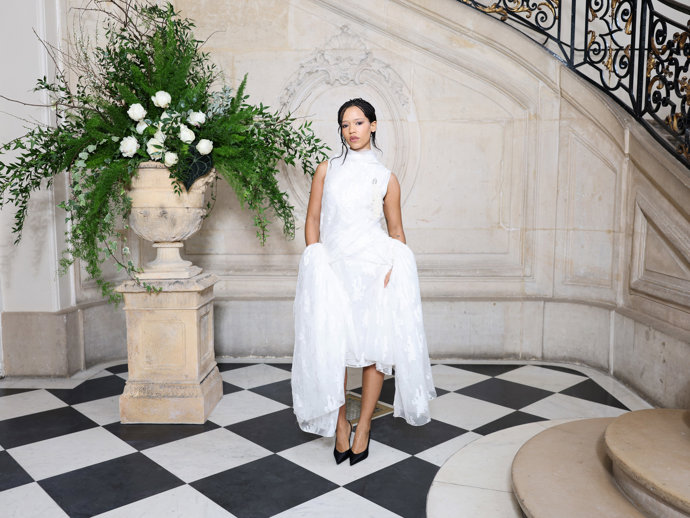 Deslumbrante. Taylor Russell quiso ser la luz y lo consiguió con este vestidazo blanco impoluto sin mangas, falda voluminosa. Con el pelo recogido, pero con un peinado desenfadado, la modelo canadiense quiso aportarle un toque sofisticado con un broche de perlas. En cuanto al calzado, optó por tacones de punta en color negro, añadiéndole ese toque bicolor al conjunto.