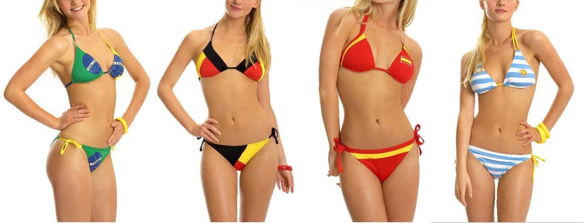 La marca de lencería 'Etam' ha creado una forma muy original de apoyar a tu selección en el Mundial de Sudáfrica de 2010. Con los primeros rayos de sol y la subida de las temperaturas, esta firma ha diseñado unos originales bikinis con las banderas de las selecciones para que las más futboleras puedan apoyar a su país hasta tomando el sol en una hamaca.